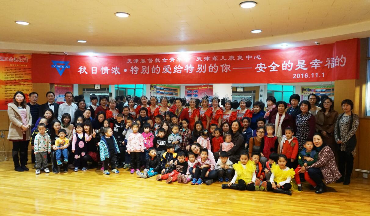 2016年11月1日,天津基督教女青年会在天津市聋儿康复中心举办了以“秋日情浓特别的爱给特别的你—安全的是幸福的”为主题的联欢活动。天津市聋儿康复中心师生及家长代表,天津女青年会会员、义工百余人参加了活动。