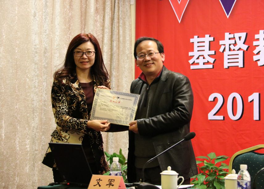 赵静文总干事为文军教授颁发义工证书