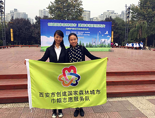 西安女青年会接受市妇联授予“西安市创建国家森林城市巾帼志愿服务队旗”
