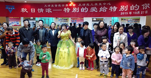 2015年10月27日,天津女青年会与天津市聋儿康复中心联手,举办了以“秋日情浓—特别的爱给特别的你”为主题的同乐会活动。来自天津市聋儿康复中心的师生与家长、天津女青年会会员、义工、益人培训中心学生与家长、幼光幼儿园老师近百人,欢聚一堂,共同度过了一个美好的下午。