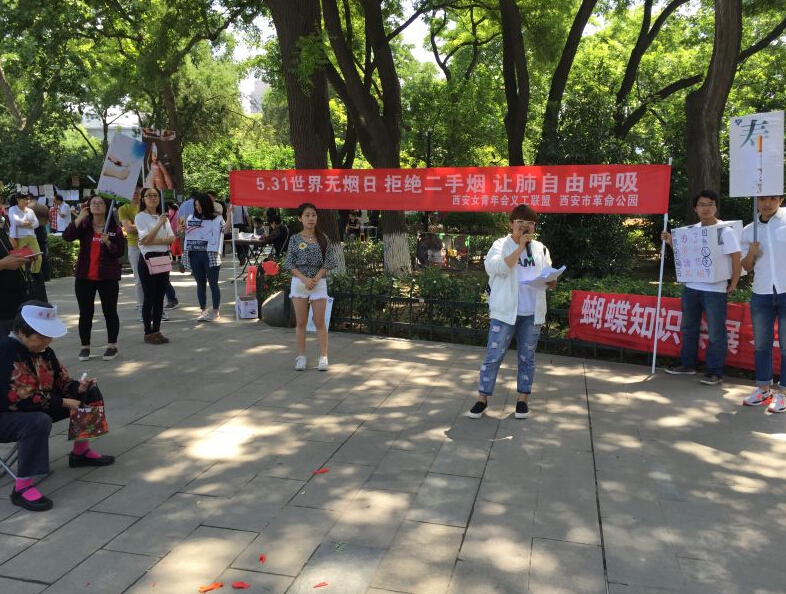 “拒绝二手烟,让肺自由呼吸”---西安女青年会开展世界无烟日宣传活动