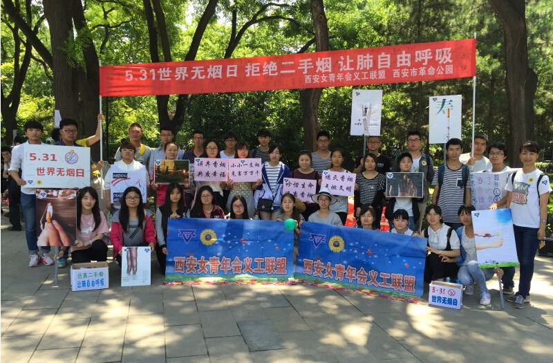 5月29日,西安女青年会义工联盟组织30余位志愿者来到了西安市革命公园,举行了第29届世界无烟日的宣传活动。