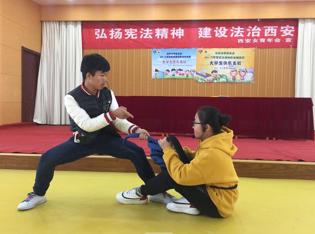 随着信息科技的日渐发达,未成年人越来越容易接触到社会不良文化。其中校园犯罪不断发生,一些未成年人对法律知识缺乏了解,往往因为义气、钱财等原因稀里糊涂的走向犯罪;也有些未成年人因为缺乏法律意识,面对同学、社会人士的欺负而忍气吞声。今年的法制宣传系列活动,西安女青年会专门针对学生犯罪这一现象,精心编排了两个普法知识话剧,为300余名小学生进行表演。通过志愿者生动的表演,让小学生们直观的感受到学习法律知识的必要性,学会用法律的武器保护自己,远离校园犯罪,加强思想道德修养,增强自我防卫能力,做到学法、懂法、知法、守法。(西安女青年会)