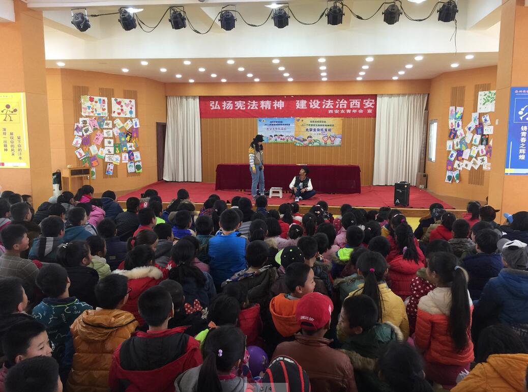 为做好今年“12·4”全国法制宣传日系列工作,根据市宗教局文件精神和工作要求,结合实际情况,紧紧围绕“弘扬宪法精神建设法治西安”这一活动主题,12月4日,西安女青年会一行8人走进周至楼观新镇小学,深入开展了一次针对小学生的法制宣传教育活动,并取得了良好的效果。