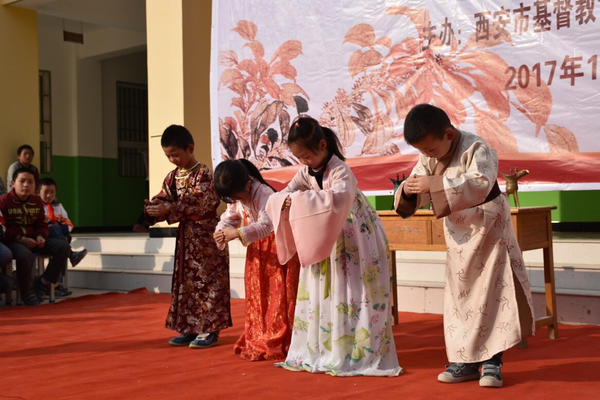 西安青年会留守儿童服务项目兴趣班的学生还为爷爷奶奶们表演了合唱、舞蹈和诗朗诵等节目。