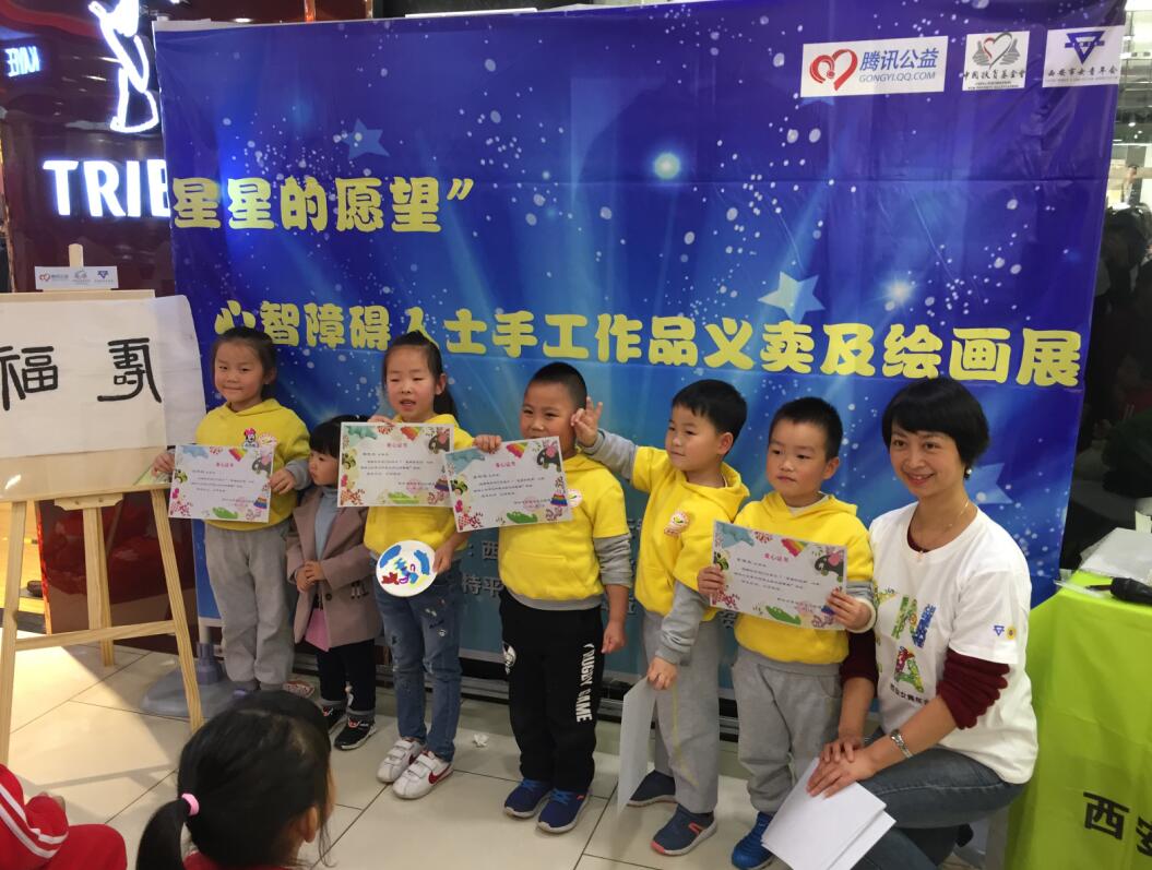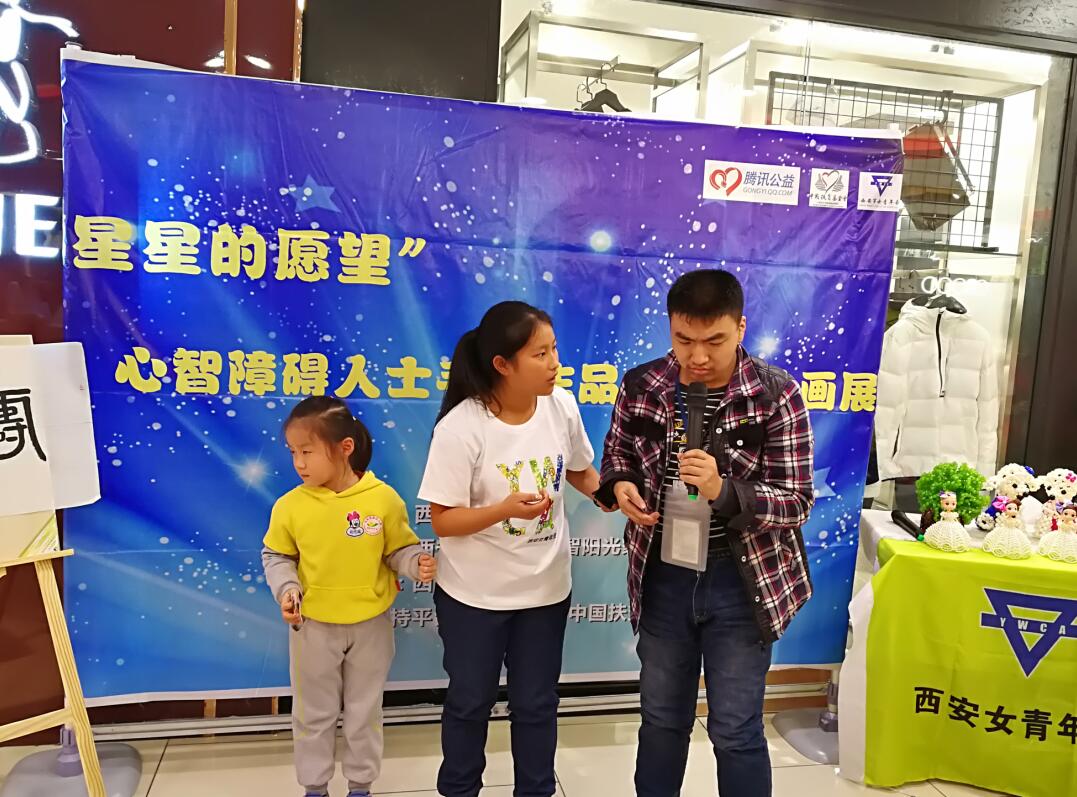2017年11月17日,西安女青年会借助“99公益日活动”在腾讯公益和中国扶贫基金会的支持下,申请的项目“星星的愿望”心智障碍人士手工艺品义卖及绘画展在西安新世界百货如期举行,活动共展出绘画作品20余幅、手工串珠作品60余件。此次活动由天智阳光家园的学生和老师,唯爱国际幼儿园的小朋友、家长和老师,以及西安女青年会义工联盟的志愿者60余人共同在这个有爱的日子里为义卖加油!