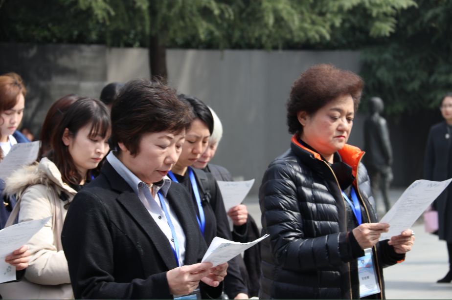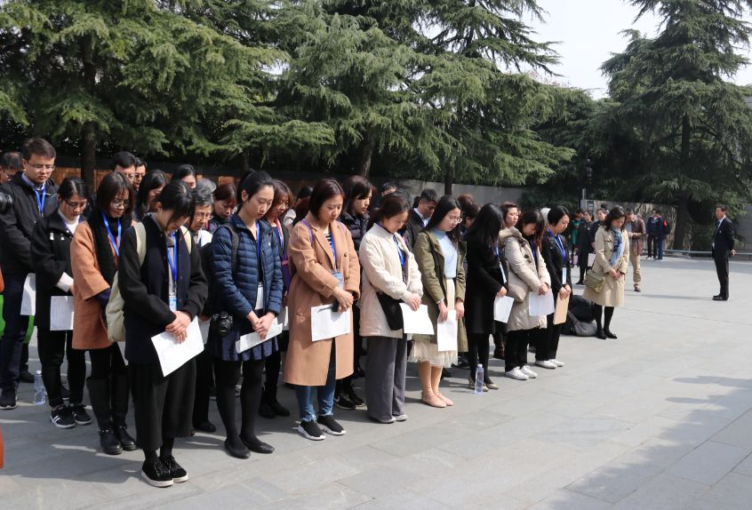 2018年3月11日上午,“南京和平思考之旅”全体代表怀着沉痛的心情拜谒了侵华日军南京大屠杀遇难同胞纪念馆,悼念在81年前那场惨绝人寰的大屠杀中的遇难者,并进行了纪念活动。