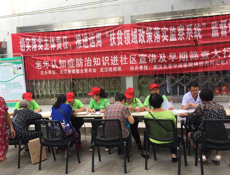 9月18日,由中华基督教青年会、女青年会支持的Y创“认知症照护之家”项目走进滨湖社区,开展第二次认知症防治知识宣讲及早期筛查大行动。武汉基督教女青年会联合晚晴枫养老助残服务中心特邀中南医院神经内科记忆门诊专家,为50位老人进行现场测试筛查。
