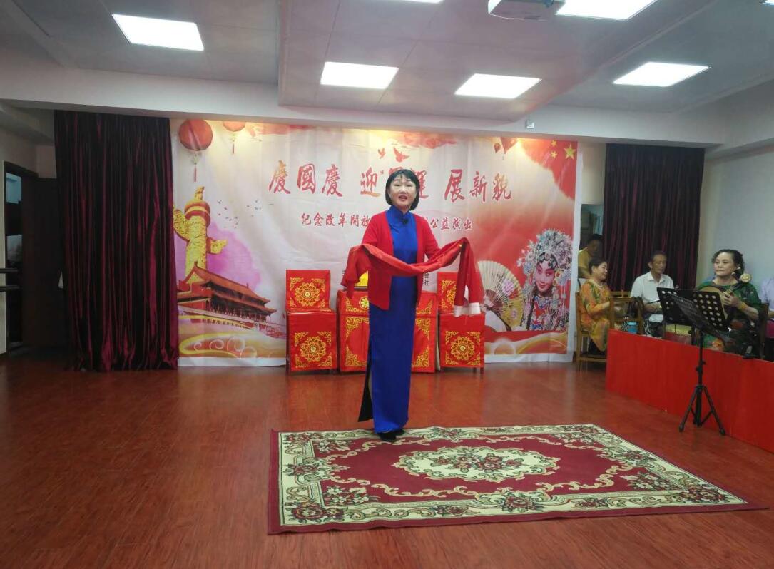武汉女青年会组织京剧队会员不懈努力、精心排练,以一场别开生面的京剧表演,为共和国69岁生日献上最诚挚的祝福,为庆祝改革开放40周年喝彩。活动在现代京剧《江姐》选段《绣红旗》中拉帷幕,《穆桂英挂帅》、《苗青娘》、《秋瑾》、《彩楼配》等15京个剧选段不断将现场推向高潮。最后一段京剧《打龙袍》更是掌声雷动。三个小时的演出,大家意犹未尽,迟迟不肯离去。