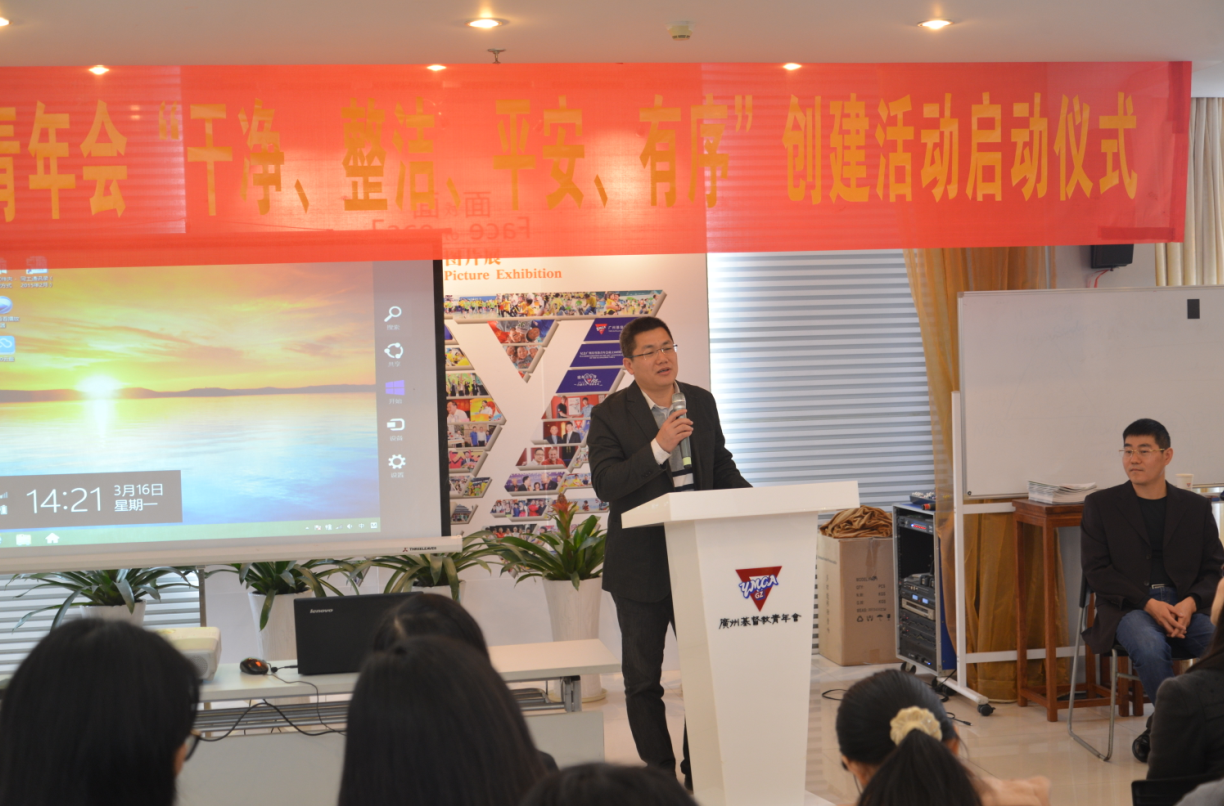 为贯彻落实市委、市政府关于在全市开展“干净、整洁、平安、有序”创建活动的要求,2015年3月16日,广州青年会在芳村会所举行了“干净、整洁、平安、有序”创建活动启动仪式,启动仪式由郭云总干事主持,近80位同工参加了活动,广州市民族宗教事务局领导到会指导。