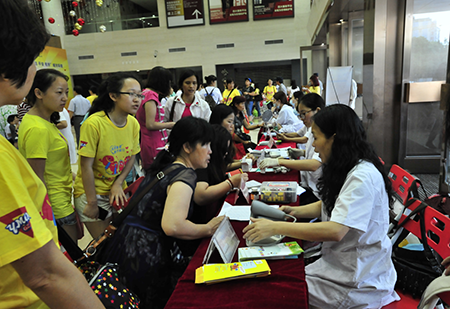 广州市红十字会医院、柏德口腔的专家也受邀前来,在义诊区为地贫患者和广大市民免费检查血糖、血压与及口腔健康,同时为婚检、产检与孕检——重型地贫的三道防线,提供相关咨询;专事地贫援助的香港资深社工,也为地贫家庭带来了地贫患儿治疗与护理方面的丰富经验,一扫公众对地贫的困惑与担忧。