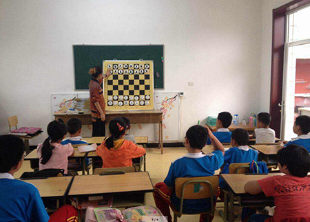 5月17日, 北京YMCA服务基地——博识学校国际象棋培训班正式开课。北京青年会派出义工周晓琛老师利用每周日下午的时间为博识学校的孩子们教授国际象棋。